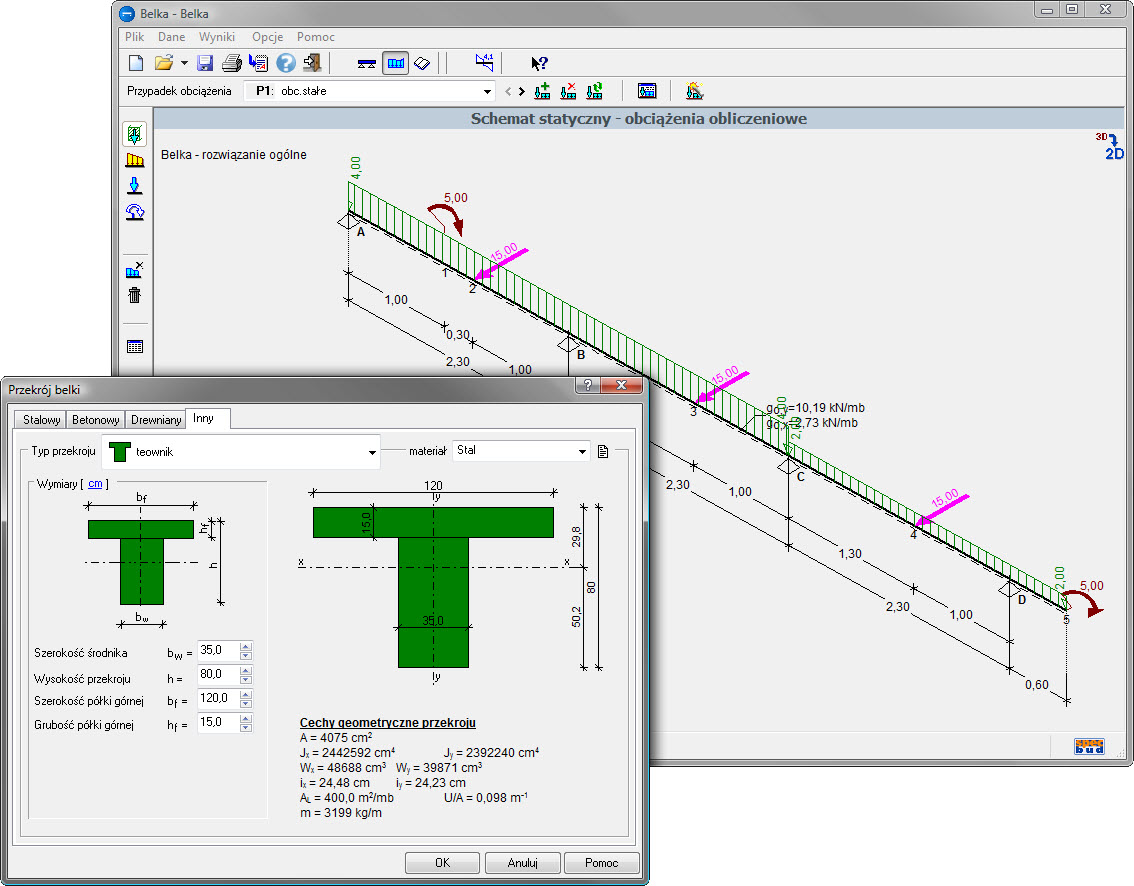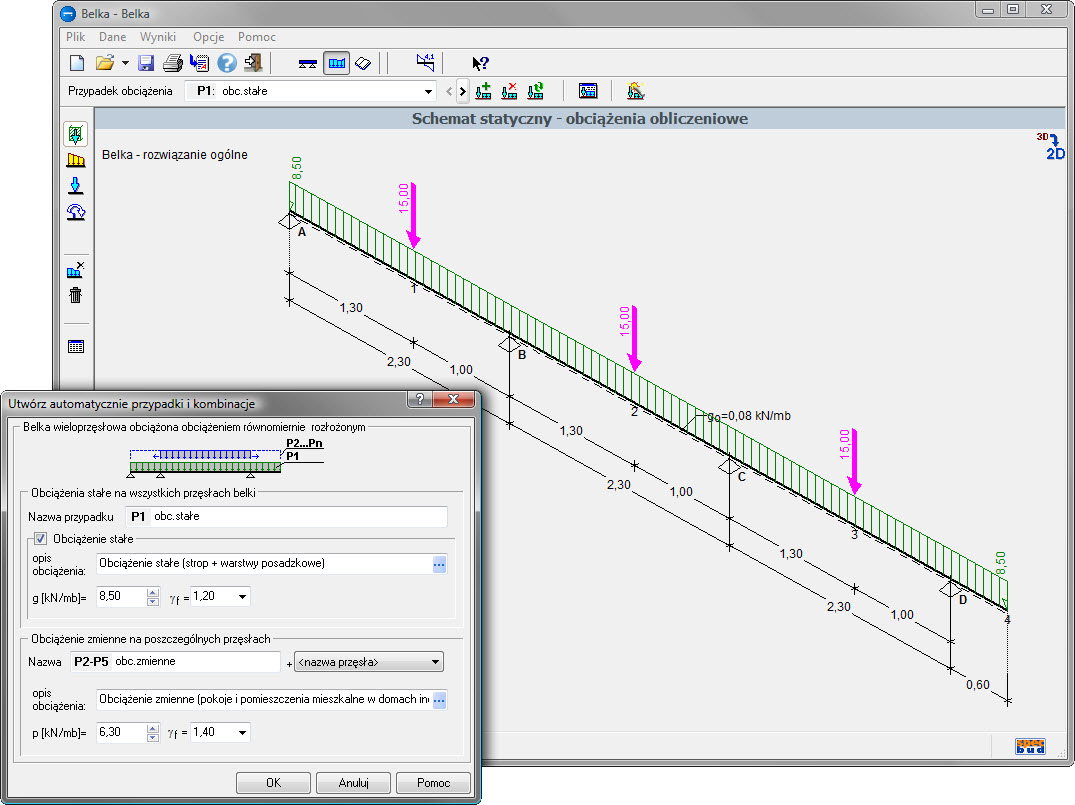 wersja: BL v4Program ten służy do obliczań statycznych belek jedno lub wieloprzęsłowych.