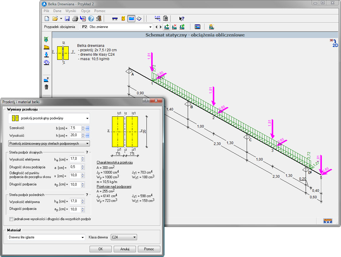 wersja: BD v5Program przeznaczony do obliczeń statycznych belek swobodnie podpartych i ciągłych dowolnie obciążonych oraz wymiarowania belek z drewna litego lub klejonego zgodnie z normą PN-B-03150:2000 z uwzględnieniem zmian Az1, Az2 i Az3.