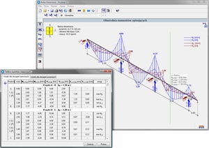 Program pracując w trybie "Belka - rozwiązanie ogólne" wykonuje obliczenia statyczne belki z dowolnego materiału (drewno, beton, stal, aluminium, materiał definiowany przez projektanta).