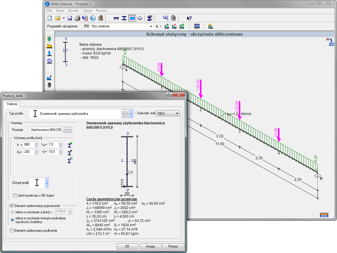Program stanowi więc narzędzie umożliwające analizę statyczno-wytrzymałościową belek i podciągów w stropach, płatwi i dźwigarów dachowych, a także szczegółową analizę wytrzymałościową elementów belkowych (rygli) ram.