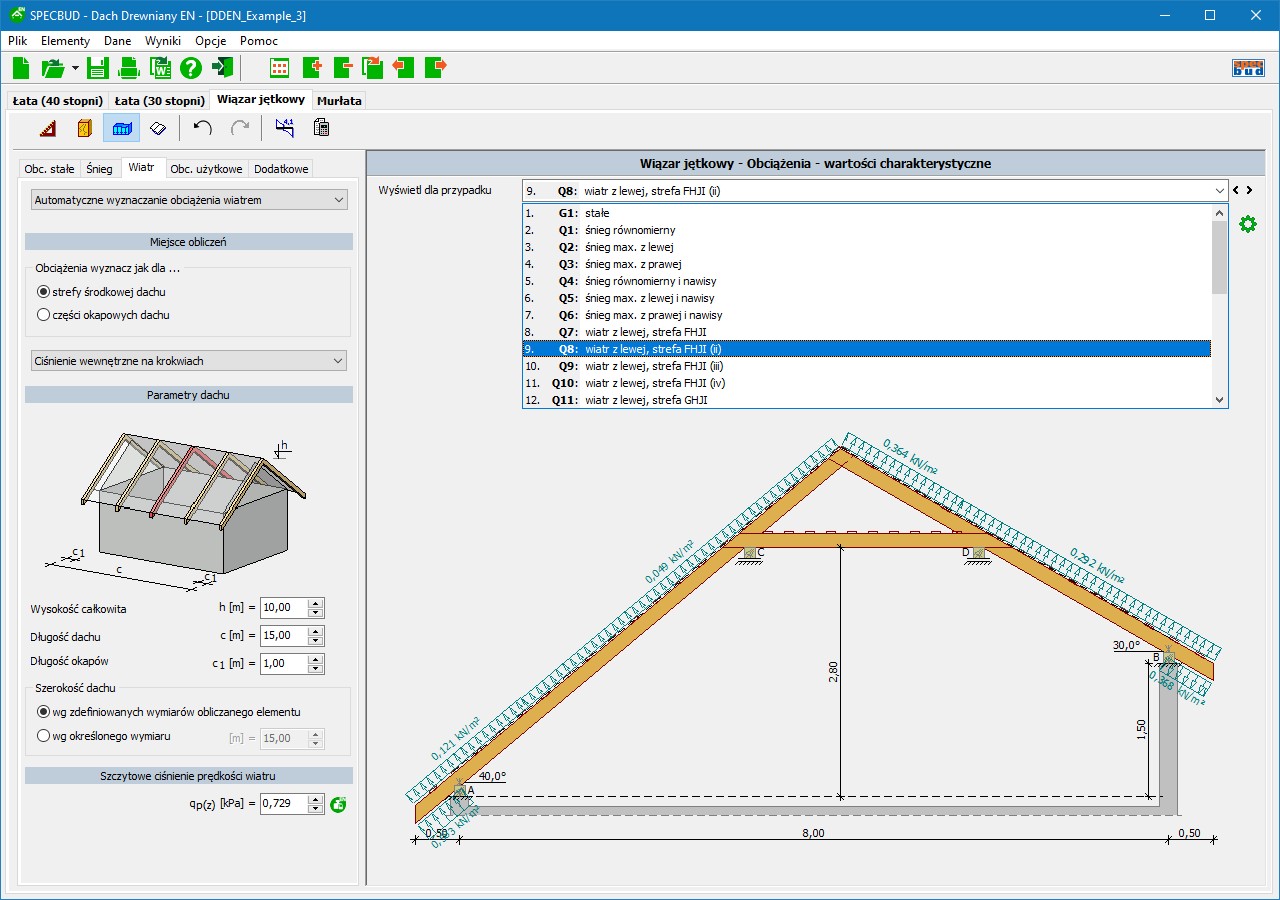 - sprawne zadawanie obciążeń stałych, użytkowych oraz klimatycznych - śniegiem oraz wiatrem (dostępne warianty deklarowania obciążeń - uproszczone, automatyczne), a także dodatkowych Użytkownika;