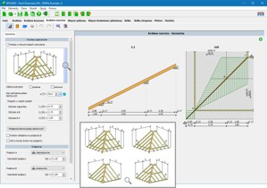 Program stanowi kompleksowe narzędzie przeznaczone do obliczeń statyczno-wytrzymałościowych elementów konstrukcji drewnianych dachów według Eurokodu drewnianego - normy EN 1995-1-1. Możliwość wyboru różnych opcji obliczeniowych pozwala na przeprowadzenie programem szczegółowych analiz wytrzymałościowych wielu elementów dachów.