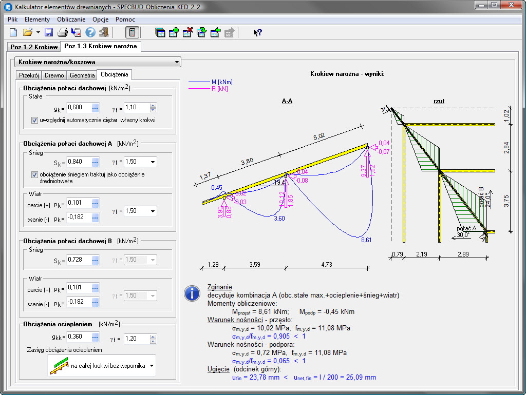 wersja: KED v3Program służy do obliczania drewnianych elementów budowlanych o przekrojach pojedynczych lub złożonych z drewna litego lub klejonego warstwowo wg normy projektowania konstrukcji drewnianych PN-B-03150:2000 z uwzględnieniem zmian Az1, Az2 i Az3 do tej normy.
