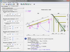 W opcjach Łata, Krokiew, Krokiew narożna/koszowa i Płatew program przeprowadza analizę nośności projektowanego elementu dla zadanych obciążeń konstrukcji dachowej. Prezentowany jest rysunek przekroju poprzecznego elementu i schemat tej części konstrukcji dachu, w której jest usytuowany obliczany element. Obciążenia stałe, zmienne, klimatyczne: śniegiem i wiatrem (wg aktualnych norm PN, z uwzględnieniem zmian Az1 do norm śniegowej i wiatrowej) mogą być deklarowane automatycznie, gdyż program posiada wbudowany generator tych obciążeń. Dodatkowo możliwa jest współpraca z modułem obciążeniowym programu Kalkulator Obciążeń Normowych. Łatwość wyboru różnych schematów konstrukcyjnych pozwala na szybkie wariantowanie rozwiązania ustroju nośnego dachu.