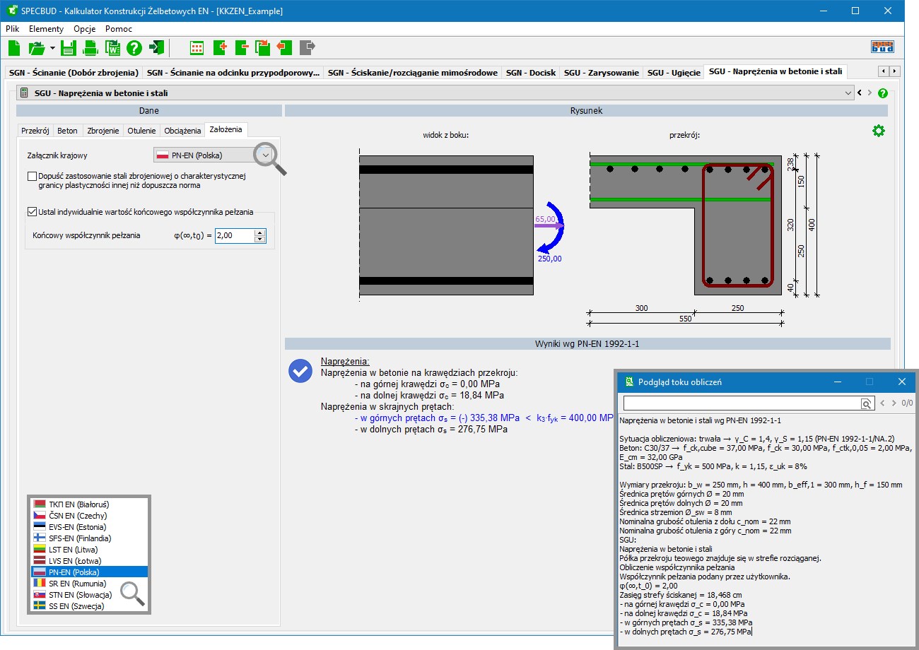 rozszerza zakres działania podstawowej wersji programu Kalkulator Konstrukcji Żelbetowych EN o ustalenia dodatkowe (tzw. postanowienia krajowe) poczynione przez Załączniki krajowe następujących krajów europejskich: