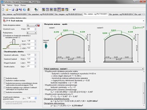 - w trybie Przeglądanie program prezentuje wartości charakterystyczne obciążeń zapisane w tablicach norm obciążeń stałych, zmiennych technologicznych i obciążeń pojazdami oraz przedstawia procedury szczegółowych obliczeń wartości obciążenia śniegiem lub wiatrem dla wybranego przypadku projektowego łącznie z rysunkiem tego zadania.