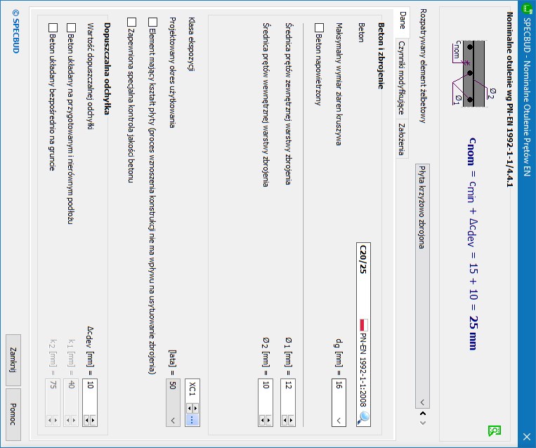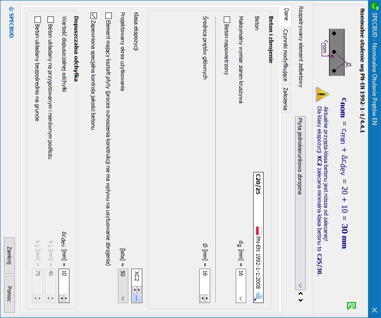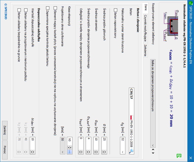 wersja: NOPEN v2Program jest narzędziem pomocnym przy określaniu nominalnego otulenia prętów zbrojeniowych zgodnie z normą EN 1992-1-1.