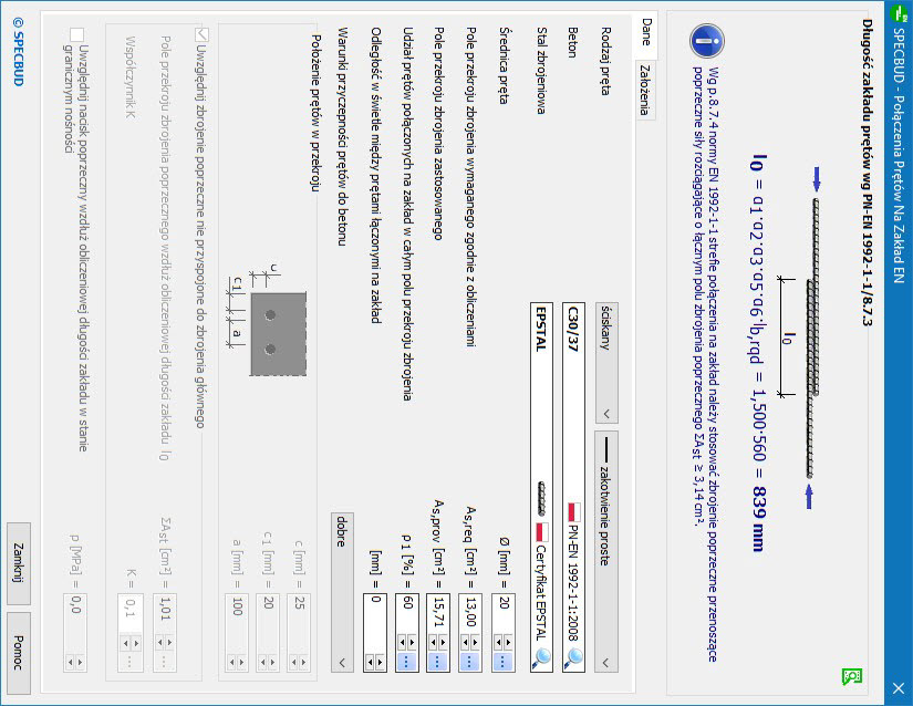wersja: PPZEN v2Program jest narzędziem pomocnym przy określaniu długości zakładu prętów zbrojeniowych zgodnie z normą EN 1992-1-1.