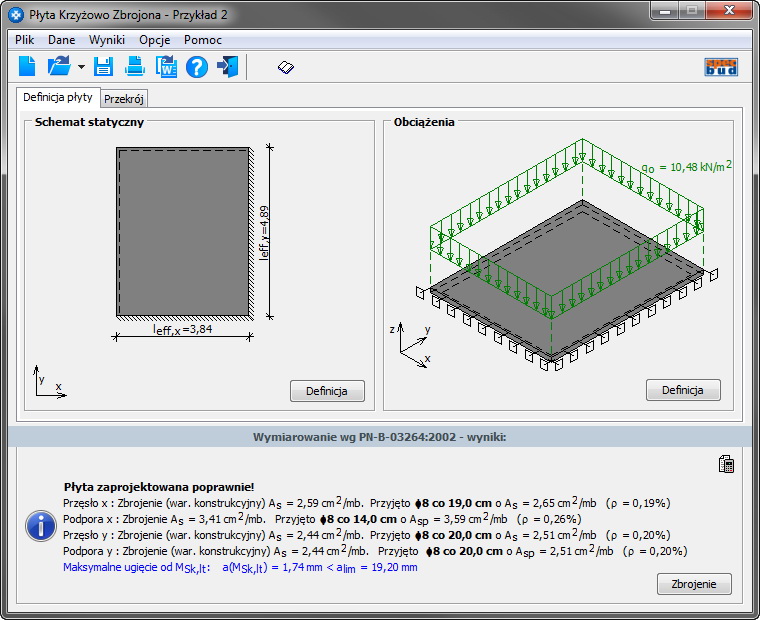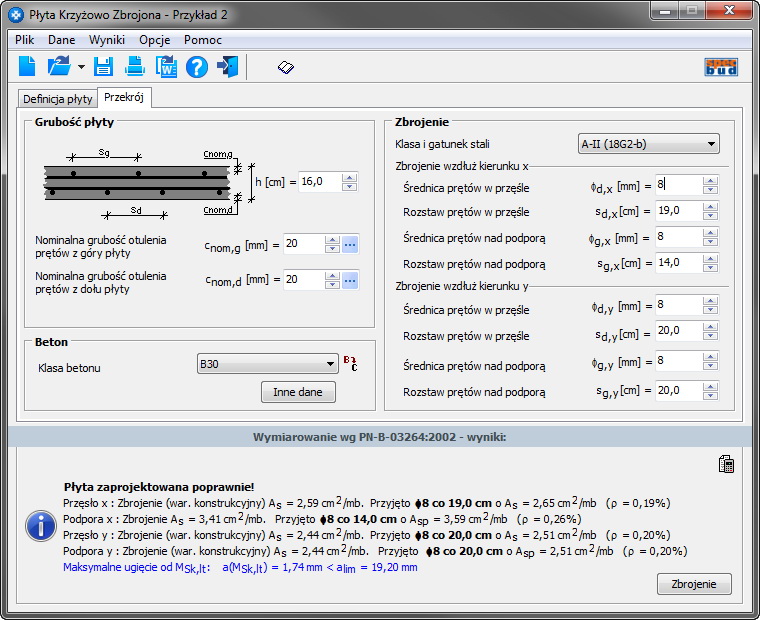 wersja: PKZ v5Program do projektowania jednopolowych prostokątnych płyt krzyżowo zbrojonych zgodnie z normą PN-B-03264:2002.