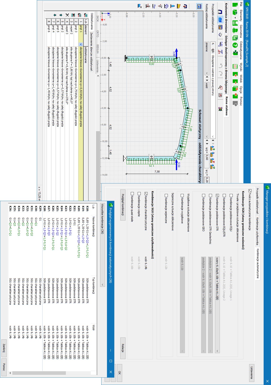 Program służy do analizy statycznej płaskich układów prętowych (ustrojów 2D), z uwzględnieniem kombinatoryki oddziaływań - automatycznej (zgodnej z normą EN 1990) lub indywidualnej Użytkownika.